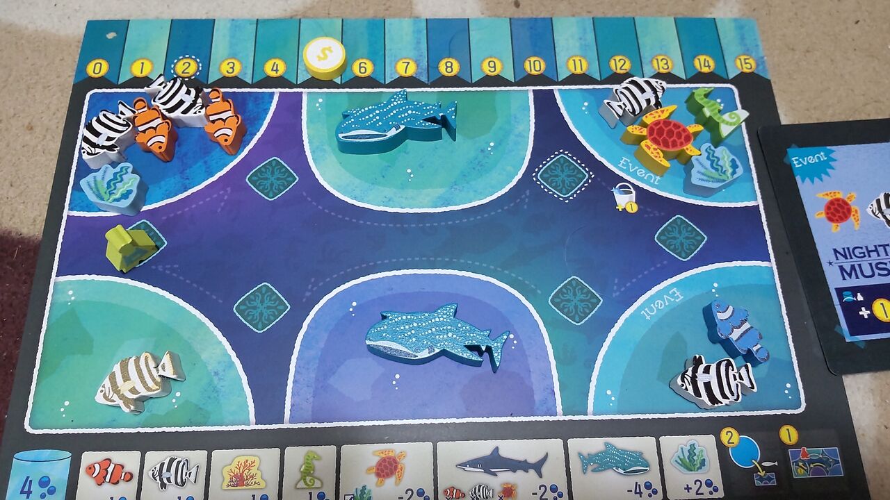 家族からの評価はちょっとあれでしたが、私は結構楽しかったです。水槽をレイアウトするのも楽しいですし、オーナー駒をどこまで進めるか、実に悩ましい時間を過ごせました。1つ1つ良かったところを見ていってみましょう。